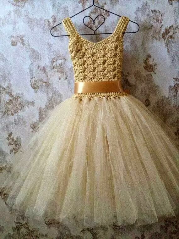 There is no pattern for this dress. The bodice is crocheted and strips of fine netting are neatly tied to the edge of the bodice.